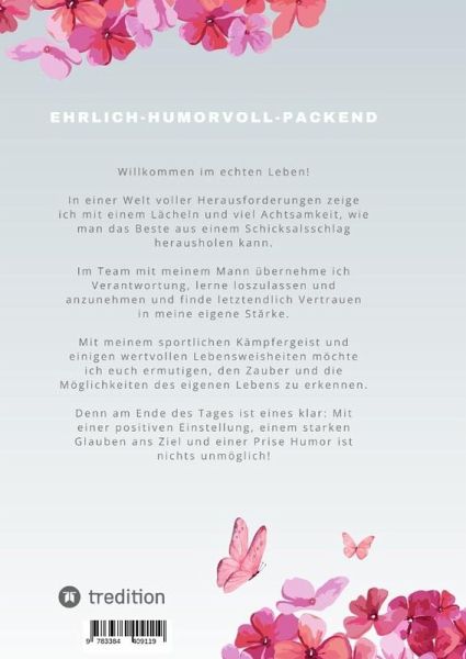 "Mut ist pink" - Eine Geschichte vom Überleben, Mut und der Kraft, das Leben neu zu definieren.Was tun, wenn eine einzige Diagnose das Leben aus den Angeln hebt? Die Autorin erzählt mit entwaffnender Ehrlichkeit und Wärme die Geschichte einer Frau, die nicht nur den Kampf gegen Brustkrebs annimmt, sondern ihn als Chance begreift, sich selbst und das Leben neu zu entdecken.Von der ersten Schockdiagnose bis zu den kleinsten Momenten der Hoffnung - in "Mut ist pink" erwarten Sie berührende Tagebuchaufzeichnungen, persönliche Einsichten und praktische Selbsthilfemethoden, die inspirieren und zum Nachdenken anregen.Diese Geschichte ist mehr als ein Erfahrungsbericht: Sie ist eine mitreißende Einladung, dem Leben trotz aller Widrigkeiten mit Mut, Humor und Dankbarkeit zu begegnen. Ein Buch, das zeigt, wie man selbst in den schwersten Zeiten Vertrauen in die eigene Kraft und den Wandel finden kann.Perfekt für alle, die nach Hoffnung suchen, sowie für die Familie und Freunde von Frauen mit dieser schicksalhaften Erstdiagnose. "Mut ist pink" erinnert uns daran, wie kostbar jeder Augenblick ist. Lassen Sie sich berühren. Lassen Sie sich inspirieren
