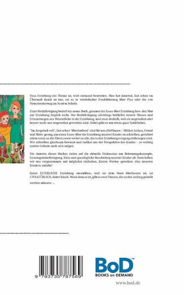 Dass Erziehung ein Thema ist, wird niemand bestreiten. Man hat dauernd, fast schon im Übermaß, damit zu tun, sei es in wiederholter Erschütterung über Pisa oder die x-te Neuorientierung im System Schule.Einer Rechtfertigung bedarf ein neues Buch, genauer ein Essay über Erziehung und den Mut zur Erziehung folglich nicht. Der Rechtfertigung allerdings bedürfen unsere Thesen und Erinnerungen ans Wesentliche in der Erziehung, und zwar deshalb, weil sie ungewohnt oder besser noch: uns ungewohnt geworden sind. Dabei geht es um etwas ganz Natürliches."Im Anspruch voll", fast schon "überlaufend" sind für uns (Hoffmann Möller) Anlass, Grund und Motiv genug, um einen Essay über die Erziehung unserer Kinder zu schreiben, gerichtet allem voran an die Eltern sowie weiter an alle, die in den Erziehungsvorgang einbezogen sind. Wir schreiben gleichsam bewusst und radikal aus der Perspektive des Kindes - so wichtig andere Gründe auch sein mögen.Die Autoren dieses Buches zielen auf die aktuelle Diskussion um Betreuungskonzepte, Ganztagsunterbringung, Kitas und ganztägliche Beschulung unserer Kinder ab. Dazu haben wir uns vorgenommen mit möglichst einfachen, klaren Worten sprechen: dies unseren Kindern zuliebe! Keine ELTERLICHE Erziehung auszuüben, weil sie dem Staat überlassen ist, ist UNNATÜRLICH, daher falsch. Wenn dem so ist, gibt es zwei Thesen, die an den Anfang gestellt werden müssen: ...
