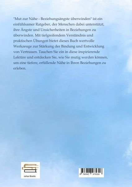 "Mut zur Nähe - Beziehungsängste überwinden" ist ein einfühlsamer Ratgeber, der Menschen dabei unterstützt, ihre Ängste und Unsicherheiten in Beziehungen zu überwinden. Mit tiefgreifendem Verständnis und praktischen Übungen bietet dieses Buch wertvolle Werkzeuge zur Stärkung der Bindung und Entwicklung von Vertrauen. Tauchen Sie ein in diese inspirierende Lektüre und entdecken Sie, wie Sie mutig werden können, um eine tiefere, erfüllende Nähe in Ihren Beziehungen zu erleben.