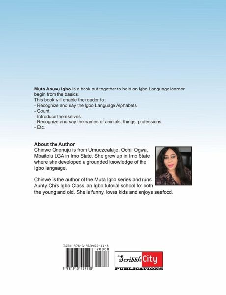 Mụta Asụsụ Igbo is a book put together to help an Igbo Language learner begin from the basics. This book will enable the reader to: - Recognize and say the Igbo Language Alphabets - Count - Introduce themselves. - Recognize and say the names of animals, things, professions. - Etc.