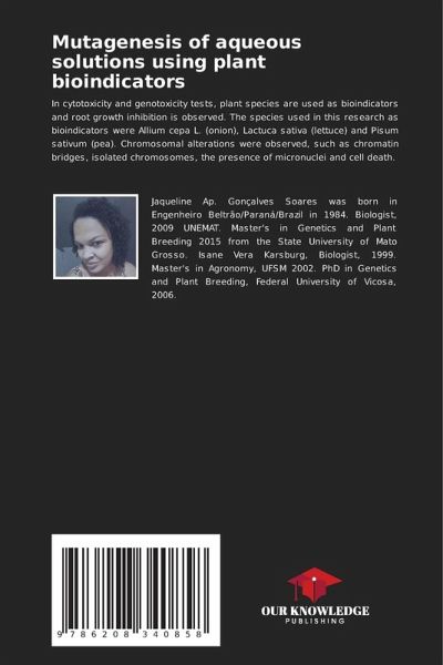 In cytotoxicity and genotoxicity tests, plant species are used as bioindicators and root growth inhibition is observed. The species used in this research as bioindicators were Allium cepa L. (onion), Lactuca sativa (lettuce) and Pisum sativum (pea). Chromosomal alterations were observed, such as chromatin bridges, isolated chromosomes, the presence of micronuclei and cell death.