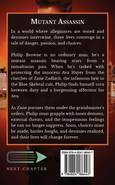 In a world where allegiances are tested and destinies intertwine, three lives converge in a tale of danger, passion, and choices. Philip Browne is no ordinary man; he's a mutant assassin bearing scars from a tumultuous past. When he's tasked with protecting the innocent Ava Hayes from the clutches of Zane Zadiach, the infamous heir to the Blue Skeletal cult, Philip finds himself torn between duty and a burgeoning affection for Ava. As Zane pursues them under the grandmaster's orders, Philip must grapple with inner demons, external threats, and the tempestuous feelings he can no longer suppress. Soon, choices must be made, battles fought, and destinies realized, and their lives will change forever.