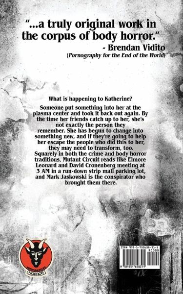 What is happening to Katherine? Someone put something into her at the plasma center and took it back out again. By the time her friends catch up to her, she's not exactly the person they remember. She has begun to change into something new, and if they're going to help her escape the people who did this to her, they may need to transform, too. Squarely in both the crime and body horror traditions, Mutant Circuit reads like Elmore Leonard and David Cronenberg meeting at 3 AM in a run-down strip mall parking lot, and Mark Jaskowski is the conspirator who brought them there.