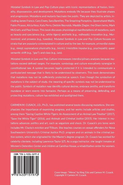 Mutated Symbols in Law and Pop Culture plays with iconic representations of fusion, liminality, dispossession, and development. Mutations embody life because they illustrate phases and progression. Mutations and mutants fascinate the public. They are depicted by artists, including James Franco, Cary Elwes, Sara Bareilles, The Smashing Pumpkins, Quvenzhané Wallis, Pablo Picasso, Alicia Keys, Katy Perry, Debbie Reynolds, Maddie Ziegler, the Olsen twins, Mark McGrath, and Paul Simon. This book discusses physiological manifestations of mutations, such as beauty and specialness (e.g., white tigers); aesthetic (e.g., redheads); innovation (e.g., Mormonism); and prowess (e.g., tuxedos). Mutated Symbols in Law and Pop Culture focuses on strata that are popularly contemplated in culture and by the law; for example, primordial states (e.g., sleep); supranatural physicality (e.g., bionic); irresistible impulse (e.g., psychopath); queer semantic shift (e.g., "gay"); and class (e.g., Leo).