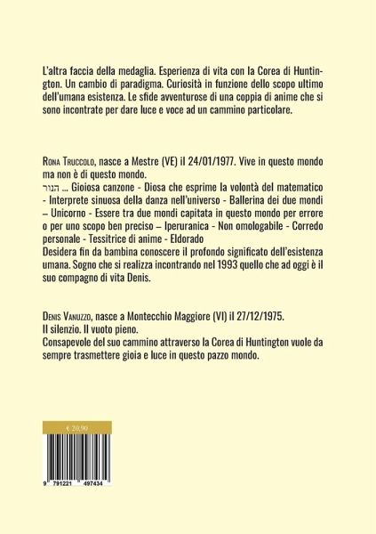 L'altra faccia della medaglia. Esperienza di vita con la Corea di Huntington. Un cambio di paradigma. Curiosità in funzione dello scopo ultimo dell'umana esistenza. Le sfide avventurose di una coppia di anime che si sono incontrate per dare luce e voce ad un cammino particolare.