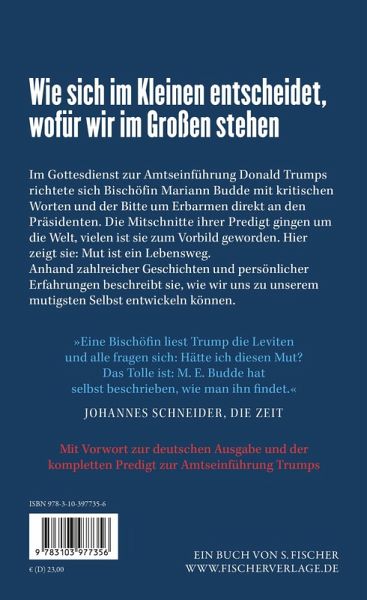 Im Gottesdienst zur Amtseinführung Trumps richtete sich Bischöfin Mariann Budde mit kritischen Worten und der Bitte um Erbarmen direkt an den Präsidenten. Die Mitschnitte ihrer Predigt gingen um die Welt, vielen ist sie zum Vorbild geworden. Hier zeigt sie: Mut und mutiges Handeln sind ein Lebensweg. Anhand zahlreicher Geschichten - von Harry Potter über den Kleinen Prinzen bis zum Lukasevangelium - und persönlicher Erfahrungen beschreibt sie, wie wir uns zu unserem mutigsten Selbst entwickeln können.