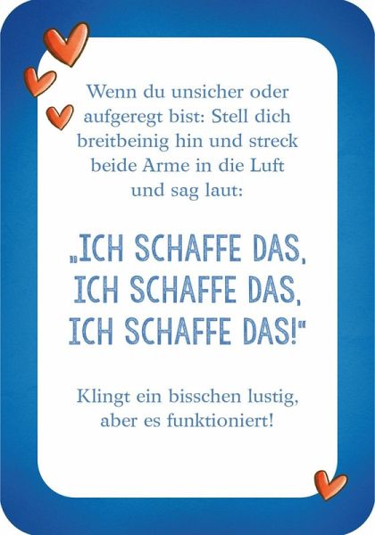 Affirmation und Motivation: Für Mädchen und JungenZum Mutmachen: Für die verschiedensten Alltagssituationen und Lebenslagen wie auch für den UnterrichtPraktische Kartenbox: Die hochwertige, handliche Schachtel enthält 50 unterschiedliche KartenTolles Geschenk: Zum Schul- oder auch Kindergartenstart
