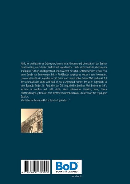 Mark, ein desillusionierter Endvierziger, kommt nach Scheidung und Lebenskrise in den Berliner Prenzlauer Berg, den Ort seiner Kindheit und Jugend zurück. Er zieht wieder in die alte Wohnung am Teutoburger Platz ein, und beginnt nach seinen Wurzeln zu suchen. Gedankenverloren versinkt er in einem Strudel von Erinnerungen, holt in Rückblenden Vergangenes wieder in sein Bewusstsein. Unerwartet taucht sein Jugendfreund Dirk bei ihm auf, dessen labiler Zustand Mark erschreckt. Auf der Suche nach dem Grund wird Mark an einen Gegenstand erinnert, den sie als Jugendliche in einer Baugrube fanden. Ein Fund, über den Dirk Unglaubliches berichtet. Mark beginnt an Dirk's Verstand zu zweifeln und zieht Ritchie, einen befreundeten Historiker, hinzu, dessen Nachforschungen, jedoch alles noch mysteriöser erscheinen lassen. Das Rätsel weist in vergangene Epochen.Was haben sie damals wirklich in dem Loch gefunden ...?