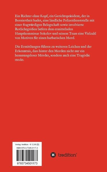Ein Richter ohne Kopf, ein Gerichtspräsident, der in Borniertheit badet, eine ländliche Polizeidienststelle mit einer fragwürdigen Belegschaft als auch involvierte Rotlichtgrößen liefern dem ermittelnden Hauptkommissar Sokolov und seinem Team eine Vielzahl von Motiven für einen barbarischen Mord.