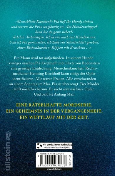 Rechtsmediziner Henning Kirchhoff kann einige der Opfer identifizieren, die schon vor Jahren ermordet wurden. Alle waren Frauen. Alle verschwanden an einem Sonntag im Mai. Pia ist überzeugt: Der Mörder läuft noch frei herum. Er sucht sein nächstes Opfer. Und bald ist Anfang Mai.