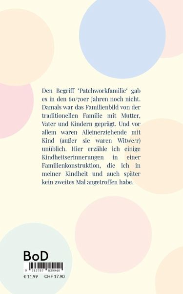 Den Begriff "Patchworkfamilie" gab es in den 60/70er Jahren noch nicht. Damals war das Familienbild von der traditionellen Familie mit Mutter, Vater und Kindern geprägt. Und vor allem waren Alleinerziehende mit Kind (außer sie waren Witwe/r) unüblich. Hier erzähle ich einige Kindheitserinnerungen in einer Familienkonstruktion, die ich in meiner Kindheit und auch später kein zweites Mal angetroffen habe.