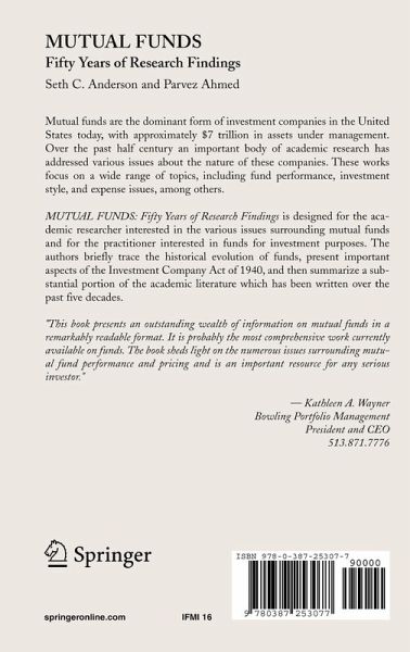 MUTUAL FUNDS: Fifty Years of Research Findings is designed for the academic researcher interested in the various issues surrounding mutual funds and for the practitioner interested in funds for investment purposes. The authors briefly trace the historical evolution of funds, present important aspects of the Investment Company Act of 1940, and then summarize a substantial portion of the academic literature which has been written over the past five decades.