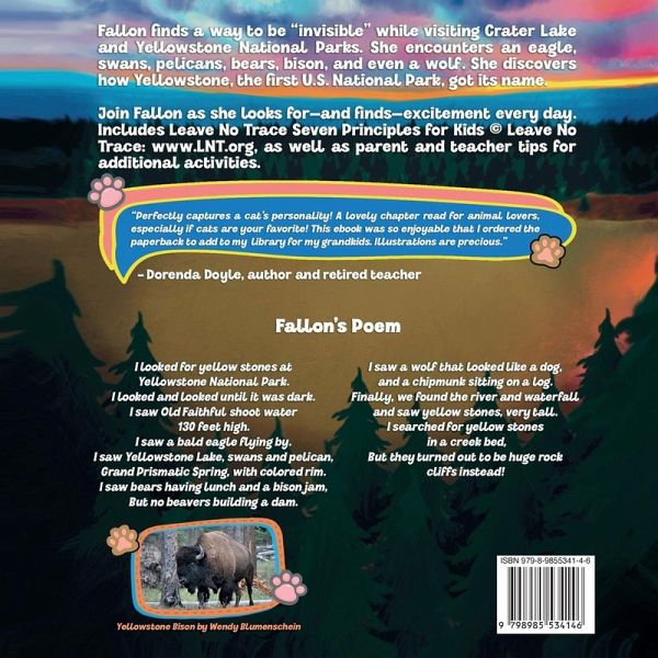 Adopted by a retired couple, Fallon has many adventures traveling across the U.S. in a motorhome. In this second book of the series, Fallon visits Crater Lake National Park in Oregon and Yellowstone National Park in Wyoming. She observes a bison jam, a bear close-up, and a variety of other wildlife, as well as geysers and other natural wonders. She discovers how Yellowstone, the first U.S. National Park got its name. Fallon enjoys being outside and notices how her family interacts with nature. After a full vacation, Fallon starts planning her next adventure in the four Colorado National Parks, Book 3. Don't miss out on more of Fallon's adventures! Grab your copy today!