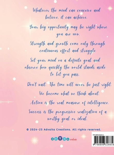 Unlock Your Potential with "My all new GOAL Journal (2025)". Transform your dreams into reality! Introducing "My all new GOAL Journal (2025) - A Highly Effective Goal Tracker for Winners Inspired from the Ivy Lee Format!"-your personal roadmap to success. This isn't just a journal; it's a catalyst for massive action and tangible results. Why Choose "My all new GOAL Journal (2025)"? In today's fast-paced world, staying focused is a challenge. The Ivy Lee Method, a century-old strategy used by the most successful people, provides a simple yet powerful solution. We've integrated this proven technique into our journal to help you especially for the new year 2025, to: Define Clear Goals: Help you identify your top 6 dreams for the year 2025. Reflect and Adapt using the yearly tracker: Regularly assess progress and adjust strategies. Monthly inspiring quotes: To keep you moving through the ups and downs of your lives! Harness the Power of Daily Rituals. Success stems from consistent, intentional actions. Who Is This Journal For? Anyone with a Dream: Personal growth, fitness goals, financial, health or creative projects. Testimonials "My productivity has soared since I started using this journal! The Author selflessly want me to win!"-Akash Bathulwar. "A game-changer for goal setting inspired from Ivy Lee and Napolean Hill's 'Think and Grow Rich' principles"-Sandeep K.