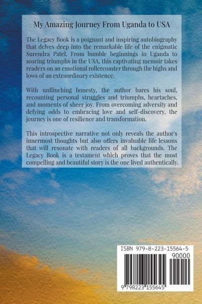 My Amazing Journey From Uganda to USA The Legacy Book is a poignant and inspiring autobiography that delves deep into the remarkable life of the enigmatic Surendra Patel. From humble beginnings in Uganda to soaring triumphs in the USA, this captivating memoir takes readers on an emotional rollercoaster through the highs and lows of an extraordinary existence. With unflinching honesty, the author bares his soul, recounting personal struggles and triumphs, heartaches, and moments of sheer joy. From overcoming adversity and defying odds to embracing love and self-discovery, the journey is one of resilience and transformation. This introspective narrative not only reveals the author's innermost thoughts but also offers invaluable life lessons that will resonate with readers of all backgrounds. The Legacy Book is a testament which proves that the most compelling and beautiful story is the one lived authentically.