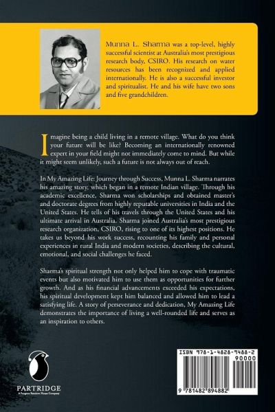 Imagine being a child living in a remote village. What do you think your future will be like? Becoming an internationally renowned expert in your field might not immediately come to mind. But while it might seem unlikely, such a future is not always out of reach. In My Amazing Life: Journey through Success, Munna L. Sharma narrates his amazing story, which began in a remote Indian village. Through his academic excellence, Sharma won scholarships and obtained master's and doctorate degrees from highly reputable universities in India and the United States. He tells of his travels through the United States and his ultimate arrival in Australia. Sharma joined Australia's most prestigious research organization, CSIRO, rising to one of its highest positions. He takes us beyond his work success, recounting his family and personal experiences in rural India and modern societies, describing the cultural, emotional, and social challenges he faced. Sharma's spiritual strength not only helped him to cope with traumatic events but also motivated him to use them as opportunities for further growth. And as his financial advancements exceeded his expectations, his spiritual development kept him balanced and allowed him to lead a satisfying life. A story of perseverance and dedication, My Amazing Life demonstrates the importance of living a well-rounded life and serves as an inspiration to others.