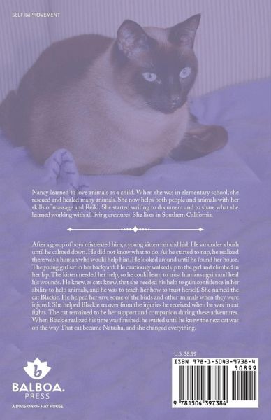 After a group of boys mistreated him, a young kitten ran and hid. He sat under a bush until he calmed down. He did not know what to do. As he started to nap, he realized there was a human who would help him. He looked around until he found her house. The young girl sat in her backyard. He cautiously walked up to the girl and climbed in her lap. The kitten needed her help, so he could learn to trust humans again and heal his wounds. He knew, as cats knew, that she needed his help to gain confidence in her ability to help animals, and he was to teach her how to trust herself. She named the cat Blackie. He helped her save some of the birds and other animals when they were injured. She helped Blackie recover from the injuries he received when he was in cat fights. The cat remained to be her support and companion during these adventures. When Blackie realized his time was finished, he waited until he knew the next cat was on the way. That cat became Natasha, and she changed everything.