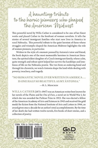 A haunting tribute to the heroic pioneers who shaped the American Midwest This powerful novel by Willa Cather is considered to be one of her finest works and placed Cather in the forefront of women novelists. It tells the stories of several immigrant families who start new lives in America in rural Nebraska. This powerful tribute to the quiet heroism of those whose struggles and triumphs shaped the American Midwest highlights the role of women pioneers, in particular. Written in the style of a memoir penned by Antonia's tutor and friend, the book depicts one of the most memorable heroines in American literature, the spirited eldest daughter of a Czech immigrant family, whose calm, quite strength and robust spirit helped her survive the hardships and loneliness of life on the Nebraska prairie. The two form an enduring bond and through his chronicle, we watch Antonia shape the land while dealing with poverty, treachery, and tragedy. "No romantic novel ever written in America...is one half so beautiful as My Ántonia." -H. L. Mencken Willa Cather (1873-1947) was an American writer best known for her novels of the Plains and for One of Ours, a novel set in World War I, for which she was awarded the Pulitzer Prize in 1923. She was elected a fellow of the American Academy of Arts and Sciences in 1943 and received the gold medal for fiction from the National Institute of Arts and Letters in 1944, an award given once a decade for an author's total accomplishments. By the time of her death she had written twelve novels, five books of short stories, and a collection of poetry.