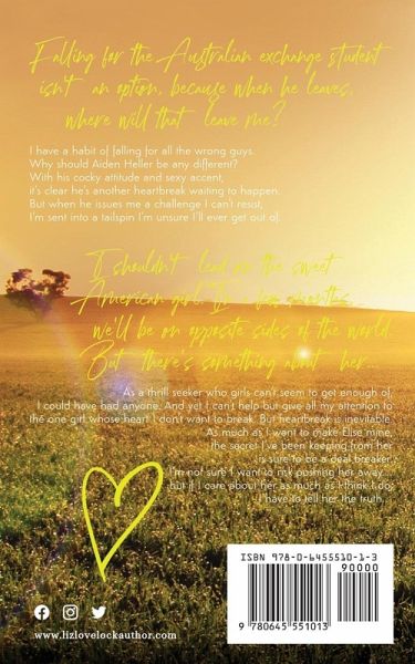 ELSIE: Falling for the Australian exchange student isn't an option, because when he leaves, where will that leave me? I have a habit of falling for all the wrong guys. Why should Aiden Heller be any different? With his cocky attitude and sexy accent, it's clear he's another heartbreak waiting to happen. But when he issues me a challenge I can't resist, I'm sent into a tailspin I'm unsure I'll ever get out of. AIDEN: I shouldn't lead on the sweet American girl. In a few months, we'll be on opposite sides of the world. But there's something about her... As a thrill seeker who girls can't seem to get enough of, I could have had anyone. And yet I can't help but give all my attention to the one girl whose heart I don't want to break. But heartbreak is inevitable. As much as I want to make Elise mine, the secret I've been keeping from her is sure to be a deal breaker. I'm not sure I want to risk pushing her away...but if I care about her as much as I think I do, I have to tell her the truth... If you love new adult college romance, you'll devour MY AUSSIE GUY by Liz Lovelock. Scroll up and one click today to find out Aiden's big secret that's sure to break any girl's heart...and put it back together again. Read the Complete Series! The My Guy Series can be read in any order, but for the maximum reading experience, read as follows: Book 1: Monday Night Guy Book 2: My Aussie Guy Book 3: My Forbidden Guy Book4: The Right Guy