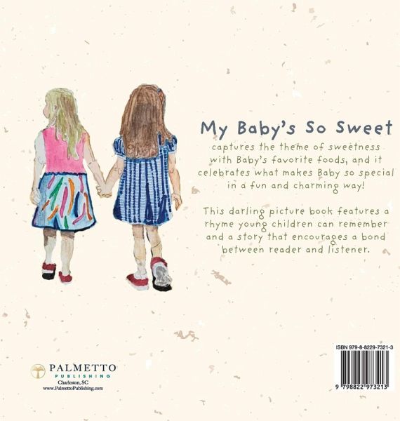 Does your little one have favorite foods? Discover a short, sing-song book that celebrates all their happy, wonderful characteristics with vibrant illustrations and a memorable rhyme. For a short bedtime read that makes children laugh, learn, and engage with reading, choose My Baby's So Sweet. Inspired by a real baby with some of her favorite foods, My Baby's So Sweet captures the theme of sweetness with Baby's favorite foods, and it celebrates what makes Baby so special in a fun and charming way! Author Margaret McCoy created the rhyme after dinner one night during her daughter, Moxie's, nightly bath time routine. Now, at almost 4, Moxie can recite the rhyme by heart with Margaret-and even baby brother, Zeller, enjoys chanting along when the rhyme uses his name. My Baby's So Sweet is a darling book beautifully illustrated by a dear family friend (Anna Mary Hollis) that features a rhyme young children can remember by heart and a story that encourages a bond between reader and listener. It is also great for new readers because they can sound out the words within the narrative's simple format. For fans of children's classics like Goodnight Moon by Margaret Wise Brown, Brown Bear Brown Bear by Eric Carle, Barnyard Dance! by Sandra Boyton, and/or Snuggle Puppy by Sandra Boyton, My Baby's So Sweet provides the same nursery rhyme-like narrative in a unique story that makes the little reader the star! The author's note to the grown-up reader even encourages them to use the listener's name to facilitate engagement.