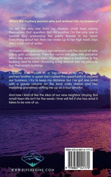 "A great start to another big-family fun, sexy, and relatable romance series! Get this one on your TBR!" - New York Times Bestseller Melissa Foster Who's the mystery woman who just walked into my brewery? I'm not the only one from my Alaskan small town asking themselves that question. But I'm positive, I'm the only one in Sunrise Bay undressing the pretty blonde in my head. Everything about her, from her make-up to her high heels says she's a fish out of water. Whispers and speculations run rampant until the secret of who she is gets uncovered. Then the rumor mill goes into overdrive when she announces she's staying to open a bookstore in the building next to mine-throwing a big wrench into my plans to buy that empty building. I quickly find myself in a tug-of-war since my business partner/brother is upset she's ruined the opportunity to expand our business. I try to keep my distance, but I've got one sister with a gossip column on the local radio station and two meddling grandmas setting me up as a tour director. And now I kind of like the idea of our new neighbor staying. But small-town life isn't for the weak-time will tell if she has what it takes to be one of us.