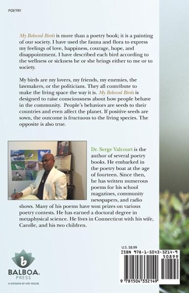 My Beloved Birds is more than a poetry book; it is a painting of our society. I have used the fauna and flora to express my feelings of love, happiness, courage, hope, and disappointment. I have described each bird according to the wellness or sickness he or she brings either to me or to society. My birds are my lovers, my friends, my enemies, the lawmakers, or the politicians. They all contribute to make the living space the way it is. My Beloved Birds is designed to raise consciousness about how people behave in the community. People's behaviors are seeds to their countries and even affect the planet. If positive seeds are sown, the outcome is fructuous to the living species. The opposite is also true.