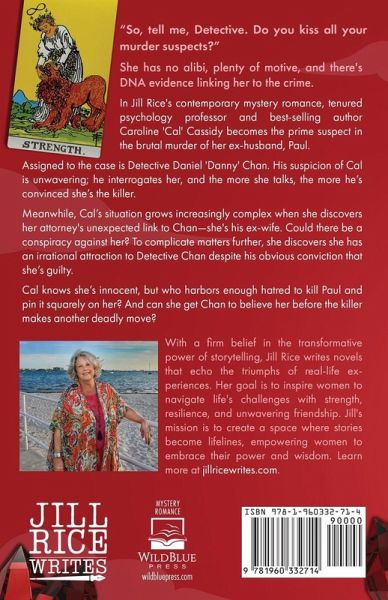 "So, tell me, Detective. Do you kiss all your murder suspects?" She has no alibi, plenty of motive, and there's DNA evidence linking her to the crime. In Jill Rice's romantic suspense, tenured psychology professor and best-selling author Caroline 'Cal' Cassidy becomes the prime suspect in the brutal murder of her ex-husband, Paul. Assigned to the case is Detective Daniel 'Danny' Chan. His suspicion of Cal is unwavering; he interrogates her, and the more she talks, the more he's convinced she's the killer. Meanwhile, Cal's situation grows increasingly complex when she discovers her attorney's unexpected link to Chan-she's his ex-wife. Could there be a conspiracy against her? To complicate matters further, she discovers she has an irrational attraction to Detective Chan despite his obvious conviction that she's guilty. Cal knows she's innocent, but who harbors enough hatred to kill Paul and pin it squarely on her? And can she get Chan to believe her before the killer makes another deadly move?