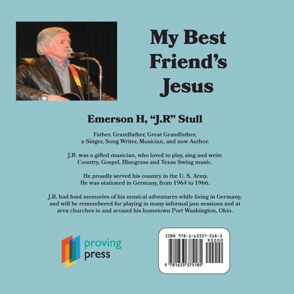 Emerson H, "J.R" Stull. Father, Grandfather, Great Grandfather, a Singer, Song Writer, Musician, and now Author. J.R. was a gifted musician, who loved to play, sing and write Country, Gospel, Bluegrass and Texas Swing music. This book is a song that J.R. wrote and is published in remembrance and honor of him by his family. My Best Friend's Jesus is on the album He Still Loves You, where J.R. gives thanks to his Lord and Savior, Jesus Christ, for His inspiration, words, and music to make the album possible.