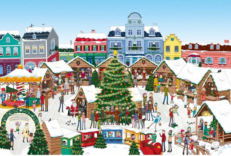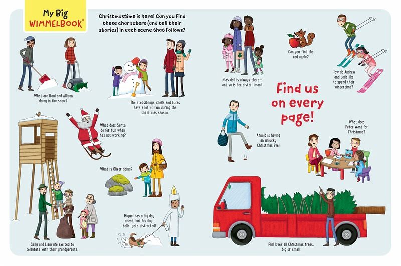 In these one-of-a-kind picture books, every page is bursting with life-and tons to discover! Children as young as age 2 have a blast pointing out recognizable things-a blue tricycle, a hungry dog, a piggyback ride-while older kids can follow the star characters from page to page, telling their stories along the way. How? Wimmelbooks are virtually instruction-free, inviting kids to make their own way through the busy Wimmelworld they encounter, and to craft their own stories. First, you're introduced to a unique cast of characters who are hidden in plain sight on the pages that follow. As you seek them out, each character's storyline unfolds, but it's up to kids to interpret the scenes and create stories they think fit. It's hours upon hours of fun-and an effortless introduction to literacy to boot. In this special holiday-themed Wimmelbook, it's Christmas time! Christmas Eve, to be exact. From the outdoor ice rink to the bustling holiday market, a busy cast of characters is having a great time as they celebrate by skating, sledding, shopping, and singing away. But will the little boy get the tractor he wants for Christmas? And where is Santa? Kids follow along and find out in My Big Wimmelbook-Christmas Village. About Wimmelbooks Wimmelbooks originated in Germany decades ago and have become a worldwide sensation with children (and adults!) everywhere. My Big Wimmelbooks is the first-ever Wimmelbook series to feature Wimmelbooks as Wimmelbooks in English. They've been praised as "lively . . . and abounding with humor and detail" (WSJ), likely to "make any parent's heart sing." (NYT)