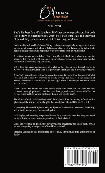 Looking for a great "friends to lovers, boss / employee, strangers to lovers', secret lovers', forbidden lovers' story, then you've found the perfect read! She's his best friend's daughter. He's her college professor. But both don't know this harsh reality when their eyes first lock at a crowded club and they succumb to the call of sizzling hot desire. In the intellectual world of a busy Chicago college where up-and-coming writers dream up stories of success and glory, a billionaire editor with a keen eye for talent finds himself entangled in a web of passion with a beautiful, soon-to-be-graduate. As a future mentor and confidant, Theo doesn't have to think twice when he's given the chance to kill two birds with one stone: teach writing at college and spend time with his best friend in the windy city of Chicago. Yet within the heady enchantment of a club in the city, he finds himself drawn to Kaylee-a beautiful woman who is as physically alluring as she is mentally seductive. A night of passion leaves both of them wanting more, but soon, they discover that what feels so right is seen by everyone as totally wrong-for Kaylee is the daughter of Theo's best friend, a man he would give his right arm for, the one person who's never let him down.