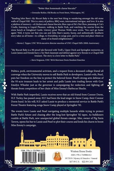 Politics, pork, environmental activism, and a request from a deceased college friend all converge when the University moves to sell Battle Park to developers. Lassie's wife, Pearl, puts her freedom on the line to protect the beloved forest. Pearl's strong-arm defense of the 93-acre treasure leads to her arrest and pulls Lassie into trading favors with Gov. Emelyn Wheeler just as the governor is campaigning for reelection and fighting off threats from competitors of her chain of Miss Emmy's Barbecue Shacks. With Battle Park imperiled, Lassie receives news that an old friend from Connor Dorm, H.F. Turley, has passed away. H.F. had been the lead singer in Snow Camp, their Connor Dorm band. In his will, HF asked Lassie to produce a memorial service in Battle Park's Forest Theatre featuring songs Snow Camp played at Springfest '82. The events leave Lassie and Pearl navigating multiple hazards while trying to protect Battle Park's future and chasing after the long-lost Springfest '82 tapes. As bulldozers rumble at Battle Park, new unexpected global threats emerge. Siler, owner of Pig Farm Tavern, opens his bar to Lassie and Pearl to plot their course and lends his charm to boost Miss Emmy's campaign.