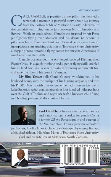Carl Gamble, a premier airline pilot, has penned a remarkable memoir, a powerful story about his journey from the cotton fields of Madison County, Alabama, to the captain's seat flying jumbo jets between North America and Europe. While in grade school, Gamble was inspired by Air Force jet fighters flying over Madison and his dream to become a pilot was born. Gamble's hard and focused work overcame an inauspicious start studying aviation at Tennessee State University, a necessary stepping stone toward a flying career for African Americans of small means in the 1960s. Gamble was awarded the Air Force's coveted Distinguished Flying Cross. His quick thinking and superior flying skills enabled him to land his C-47, severely disabled by enemy antiaircraft fire, and save the lives of his crew in Vietnam. My Blue Yonder tells Gamble's story by taking you to his boyhood home, into the cockpit of his burning airplane, and into his PTSD. You fly with him to rescue men adrift on an ice floe in Lake Superior, refuel combat aircraft at four hundred miles per hour over the Gulf of Tonkin, and negotiate with a hijacker while flying in a holding pattern off the coast of Florida...