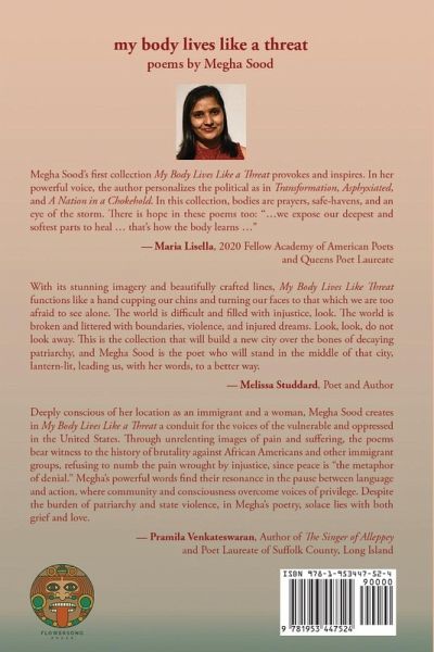 Megha Sood is a Pushcart Nominated Award-Winning Poet, Editor, Author, and Literary Activist based in New Jersey, USA. She is an Associate Editor at MookyChick(UK), Life and Legends (USA), and Literary Partner in the project "Life in Quarantine" with Stanford University, USA. Advocacy Member of United Nations Association (UNS-USA Chapter). Works featured in journals, including Poetry Society of New York, New York Public Library zine, NPR, WNYC Studio, PBS American Portrait, American Writers Review, Stanford Daily, Kissing Dynamite, Rising Phoenix Review, and many more. Advocacy Member of United Nation Association- US Chapter (UNA-USA), Member of National League of American Pen Women ( NLAPW), Member of Women's National Book Associations (WNBA)Author of Chapbook ( "My Body is Not an Apology", Finishing Line Press, 2021) and Full Length ("My Body Lives Like a Threat", FlowerSongPress,2022).Co-Editor of anthologies ( "The Medusa Project", Mookychick) and ("The Kali Project, Indie Blu(e) Press).