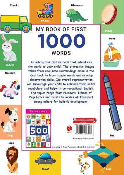 An interactive picture book that introduces the world to your child. The attractive images taken from real time surroundings make it the ideal book to learn simple words and develop observation skills. Its overall representation will encourage your child to enhance their initial vocabulary and help with conversational English. The topics range from numbers, names of vegetables, opposites, fruits, and transport among others for holistic development.
