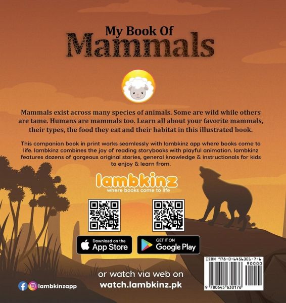 Mammals exist across many species of animals. Some are wild while others are tame. Humans are mammals too. Learn all about your favorite mammals, their types, the food they eat and their habitat in this illustrated book.