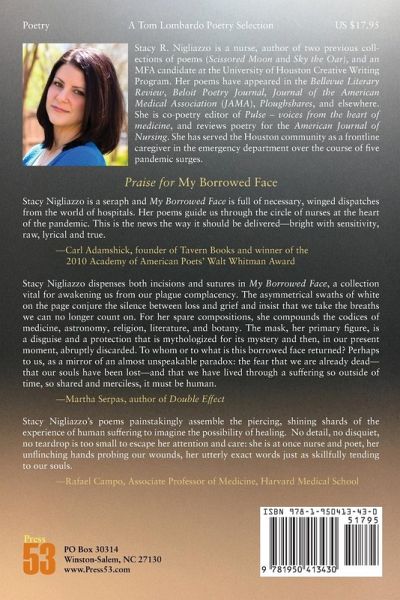 "Award-winning poet Stacy R. Nigliazzo is a nurse who served the Houston community in the emergency department over the course of five COVID-19 surges. My Borrowed Face, her third collection, chronicles two years in extremis; "grackle-eyed," "nettles in my hair // through my skin," while gifting readers a glint of the frantic, fractured world of a frontline nurse battling "lungs aflame // with ground glass" and "discarded faces" in "every lampblack corridor." And yet, mercifully and faithfully, her resiliency and resolve shine through, never letting us fall, or forget"--