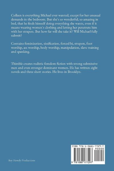 Colleen is everything Michael ever wanted, except for her unusual demands in the bedroom. But she's so wonderful, so amazing in bed, that he finds himself doing everything she wants, even if it means wearing women's clothing and letting her penetrate him with her strapon. But how far will she take it? Will Michael fully submit? Contains feminization, sissification, forced bi, strapon, foot worship, ass worship, body worship, manipulation, slave training and spanking.