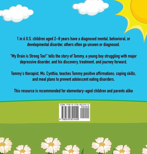 1 in 6 U.S. children aged 2-8 years have a diagnosed mental, behavioral, or developmental disorder, others often go unseen or diagnosed. "My Brain is Strong Too!" tells the story of Tommy, a young boy struggling with major depressive disorder, and his journey of discovery, treatment, and journey forward. Tommy's therapist, Ms. Cynthia, teaches Tommy and his mommy positive affirmations, coping skills, and meal plans to prevent adolescent eating disorders. This resource is recommended for elementary-aged children and parents alike.