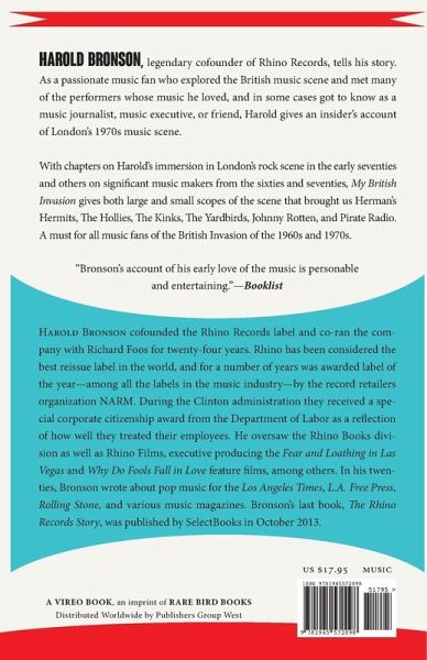 Harold Bronson co-founded the Rhino Records label, and co-ran the company with Richard Foos for 24 years. Rhino has been considered the best reissue label in the world, and for a number of years was awarded label of the yearamong all the labels in the music industryby the record retailers organization NARM. During the Clinton administration they received a special, corporate citizenship award from the Dept. of Labor as a reflection of how well they treated their employees. He oversaw the Rhino Books division as well as Rhino Films, executive producing the Fear and Loathing In Las Vegas and Why Do Fools Fall In Love feature films, among others. In his twenties, Bronson wrote about pop music for the Los Angeles Times, L.A. Free Press, Rolling Stone and various music magazines. Bronson's last book, The Rhino Records Story, was published by Select Books in October 2013.
