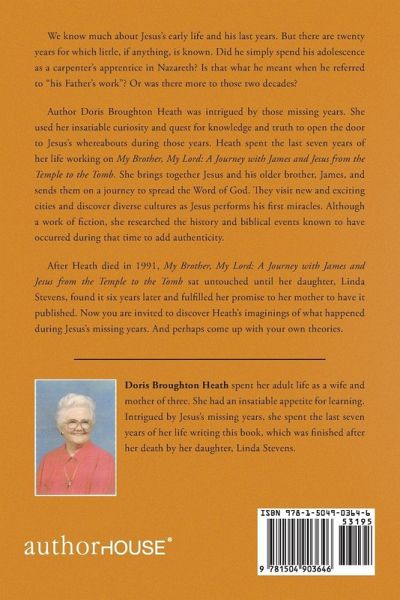 This is an intercontinental journey of James and Jesus covering a time span of approximately twenty years of which there is no known record of the whereabouts of Jesus as he went "about my Father's wok (Luke 3:49, NIV)." During this time, Jesus experiences trials and tribulations from the perspective of man, and James struggles with the concept that his brother is the son of God. Separated from family since age eight, apprenticed to his uncle, James would now have the opportunity to build a relationship with his beloved little brother. What had he gotten himself into by accepting an inheritance and guardianship of his brother, Jesus? James and Jesus sojourn from their homeland into new and exciting cities. Their journey introduces them to diverse challenges, unforgettable personalities, love, battles, and most importantly, the task of teaching the Word of God to all who would grant audience and accept a sovereign God. From Jerusalem to Calais, Rome, Athens, Britain, the land of the North Sea, they traveled by water and land in search of trade goods for the prosperity of the house of Joseph of Arimathea.
