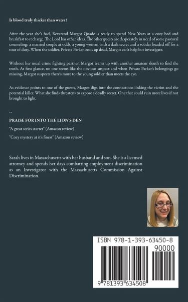 Is blood truly thicker than water? After the year she's had, Reverend Margot Quade is ready to spend New Years at a cozy bed and breakfast to recharge. The Lord has other ideas. The other guests are desperately in need of some pastoral counseling: a married couple at odds, a young woman with a dark secret and a solider headed off for a tour of duty. When the soldier, Private Parker, ends up dead, Margot can't help but investigate. Without her usual crime fighting partner, Margot teams up with another amateur sleuth to find the truth. At first glance, no one seems like the obvious suspect and when Private Parker's belongings go missing, Margot suspects there's more to the young soldier than meets the eye. As evidence points to one of the guests, Margot digs into the connections linking the victim and the potential killer. What she finds threatens to expose a deadly secret. One that could ruin more lives if not brought to light. MY BROTHER'S KEEPER is the fourth book in this fast-paced, faith-filled series. Buy MY BROTHER'S KEEPER to join in the sleuthing now!
