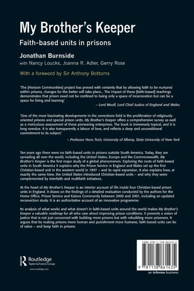 This book is the first major study of the global phenomenon of faith-based prison units. Exploring the roots of faith-based units in South America, it explains why the Prison Service of England and Wales set up the first Christian-based unit in the western world in 1997 - and why there was subsequently a rapid expansion of faith units across the Western world. The book presents a vision of justice that is not just concerned with building more prisons but with rebuilding more prisoners.