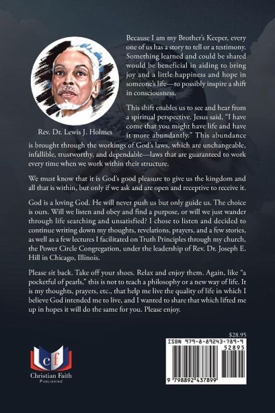 Because I am my Brother's Keeper, every one of us has a story to tell or a testimony. Something learned and could be shared would be beneficial in aiding to bring joy and a little happiness and hope in someone's life--to possibly inspire a shift in consciousness. This shift enables us to see and hear from a spiritual perspective. Jesus said, "I have come that you might have life and have it more abundantly." This abundance is brought through the workings of God's laws, which are unchangeable, infallible, trustworthy, and dependable--laws that are guaranteed to work every time when we work within their structure. We must know that it is God's good pleasure to give us the kingdom and all that is within, but only if we ask and are open and receptive to receive it. God is a loving God. He will never push us but only guide us. The choice is ours. Will we listen and obey and find a purpose, or will we just wander through life searching and unsatisfied? I chose to listen and decided to continue writing down my thoughts, revelations, prayers, and a few stories, as well as a few lectures I facilitated on Truth Principles through my church, the Power Circle Congregation, under the leadership of Rev. Dr. Joseph E. Hill in Chicago, Illinois. Please sit back. Take off your shoes. Relax and enjoy them. Again, like "a pocketful of pearls," this is not to teach a philosophy or a new way of life. It is my thoughts, prayers, etc., that help me live the quality of life in which I believe God intended me to live, and I wanted to share that which lifted me up in hopes it will do the same for you. Please enjoy.
