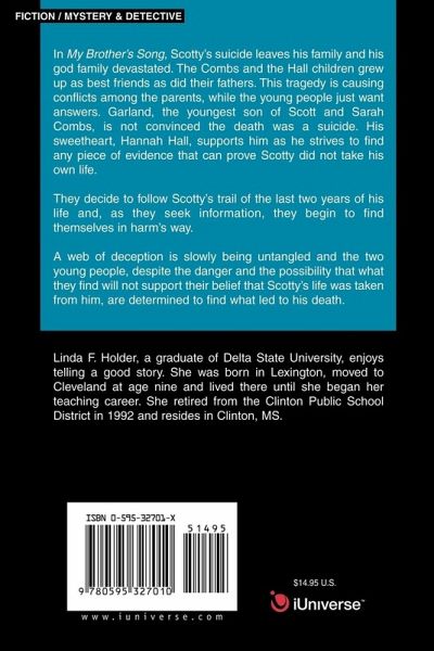 In My Brother's Song, Scotty's suicide leaves his family and his god family devastated. The Combs and the Hall children grew up as best friends as did their fathers. This tragedy is causing conflicts among the parents, while the young people just want answers. Garland, the youngest son of Scott and Sarah Combs, is not convinced the death was a suicide. His sweetheart, Hannah Hall, supports him as he strives to find any piece of evidence that can prove Scotty did not take his own life. They decide to follow Scotty's trail of the last two years of his life and, as they seek information, they begin to find themselves in harm's way. A web of deception is slowly being untangled and the two young people, despite the danger and the possibility that what they find will not support their belief that Scotty's life was taken from him, are determined to find what led to his death.