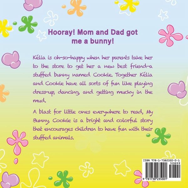 Hooray! Mom and Dad got me a bunny! Kélia is oh-so-happy when her parents take her to the store to get her a new best friend-a stuffed bunny named Cookie. Together Kélia and Cookie have all sorts of fun like playing dress-up, dancing, and getting mucky in the mud. A blast for little ones everywhere to read, My Bunny, Cookie is a bright and colorful story that encourages children to have fun with their stuffed animals.