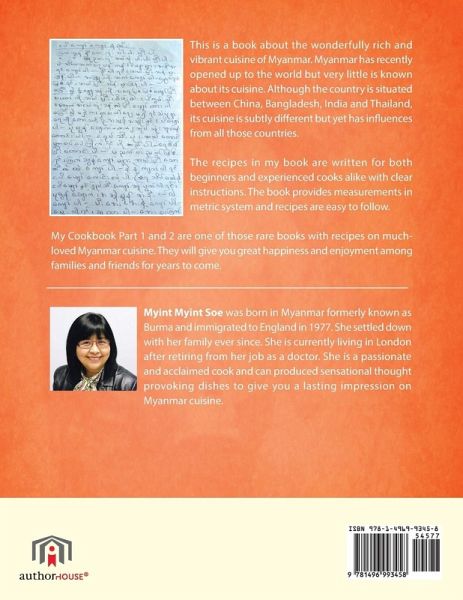 This is a book about the wonderfully rich and vibrant cuisine of Myanmar. Myanmar has recently opened up to the world but very little is known about its cuisine. Although the country is situated between China, Bangladesh, India and Thailand, its cuisine is subtly different but yet has influences from all those countries. The recipes in my book are written for both beginners and experienced cooks alike with clear instructions. The book provides measurements in metric system and recipes are easy to follow. My Cookbook Part 1 and 2 are one of those rare books with recipes on much-loved Myanmar cuisine. They will give you great happiness and enjoyment among families and friends for years to come.