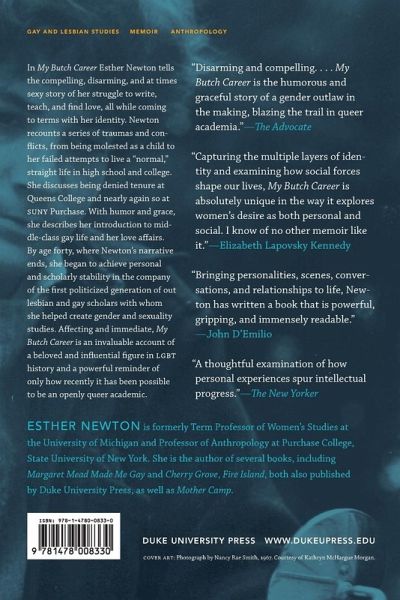 In My Butch Career Esther Newton tells the compelling, disarming, and at times sexy story of her struggle to write, teach, and find love, all while coming to terms with her identity. Newton recounts a series of traumas and conflicts, from being molested as a child to her failed attempts to live a "normal," straight life in high school and college. She discusses being denied tenure at Queens College and nearly again so at SUNY Purchase. With humor and grace, she describes her introduction to middle-class gay life and her love affairs. By age forty, where Newton's narrative ends, she began to achieve personal and scholarly stability in the company of the first politicized generation of out lesbian and gay scholars with whom she helped create gender and sexuality studies. Affecting and immediate, My Butch Career is a story of a gender outlaw in the making, an invaluable account of a beloved and influential figure in LGBT history, and a powerful reminder of only how recently it has been possible to be an openly queer academic.