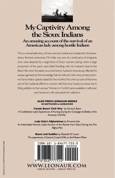 An amazing account of the survival of an American lady among hostile Indians This is a remarkable story of one woman's ordeal and a testament of extraordinary feminine endurance. Mrs Kelly was one of a small party of emigrants who were attacked by a large force of Sioux warriors during which a large proportion of the party were killed. Travelling with her husband close to the Black Hills when the attack occurred, Fanny's husband miraculously effected his escape agonised by the knowledge that his wife and child were, at best, prisoners. Fanny Kelly's captivity lasted for five months. This is her account of that time and of her husbands efforts, in concert with the Iowa Cavalry, to rescue her. A fitting addition to the Leonaur 'Women in Conflict' series available in softcover and hardcover with dust jacket for collectors.
