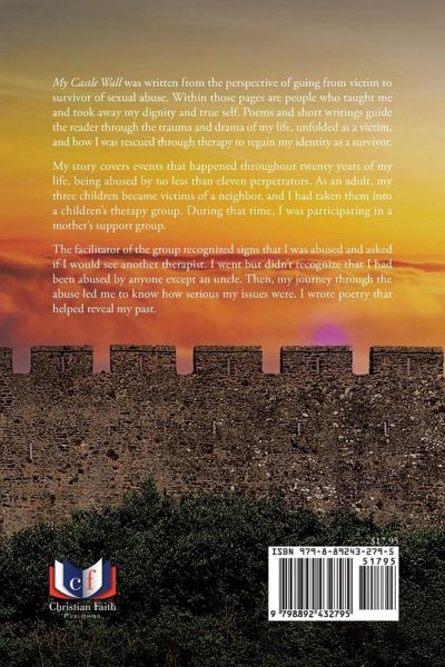 My Castle Wall was written from the perspective of going from victim to survivor of sexual abuse. Within those pages are people who taught me and took away my dignity and true self. Poems and short writings guide the reader through the trauma and drama of my life, unfolded as a victim, and how I was rescued through therapy to regain my identity as a survivor. My story covers events that happened throughout twenty years of my life, being abused by no less than eleven perpetrators. As an adult, my three children became victims of a neighbor, and I had taken them into a children's therapy group. During that time, I was participating in a mother's support group. The facilitator of the group recognized signs that I was abused and asked if I would see another therapist. I went but didn't recognize that I had been abused by anyone except an uncle. Then, my journey through the abuse led me to know how serious my issues were. I wrote poetry that helped reveal my past.