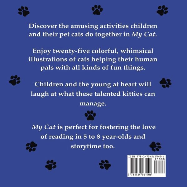 Discover the amusing activities children and their pet cats do together in My Cat. Enjoy twenty-five colorful, whimsical illustrations of cats helping their human pals with all kinds of fun things. Children and the young at heart will laugh at what these talented kitties can manage. My Cat is perfect for fostering the love of reading in five to eight year-olds and storytime too.